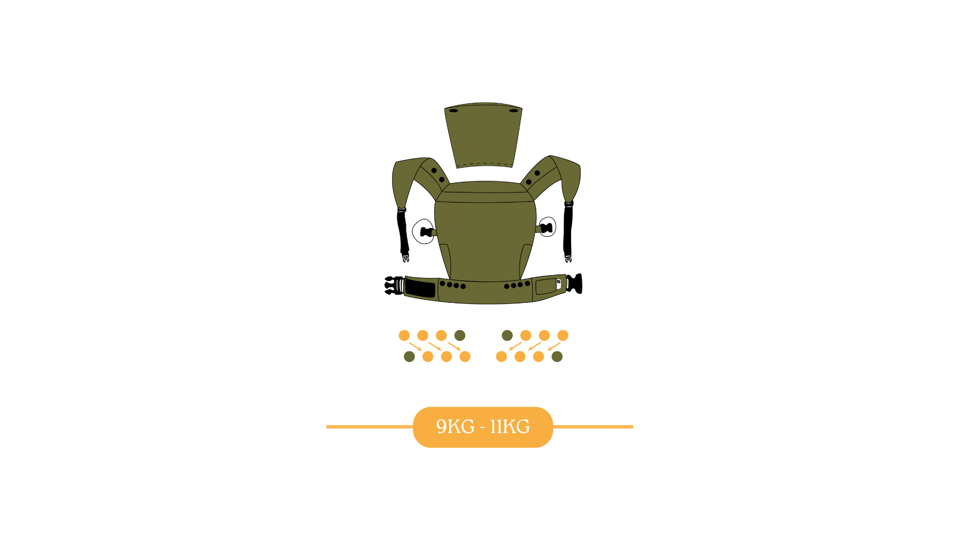 Ajusta segun el peso de tu bebé siguiendo la foto instructiva abajo.