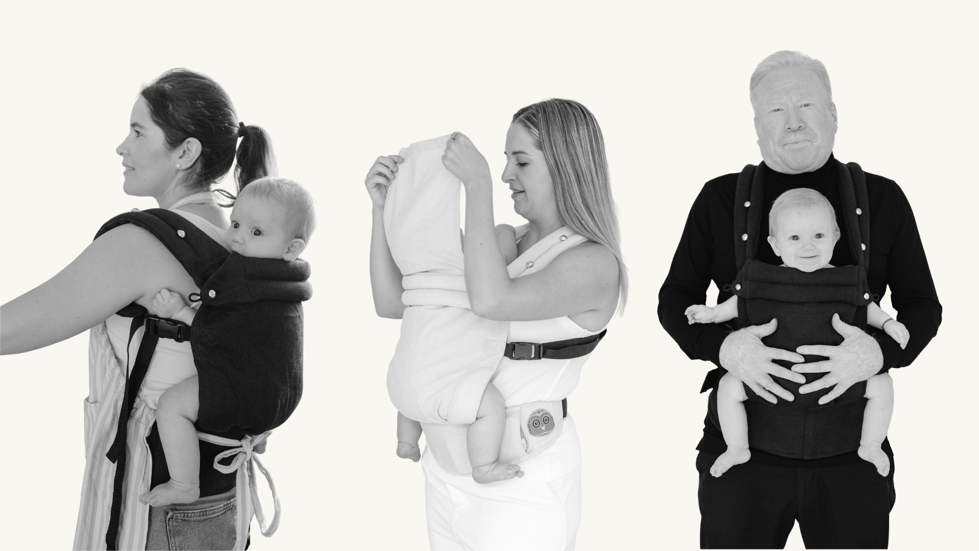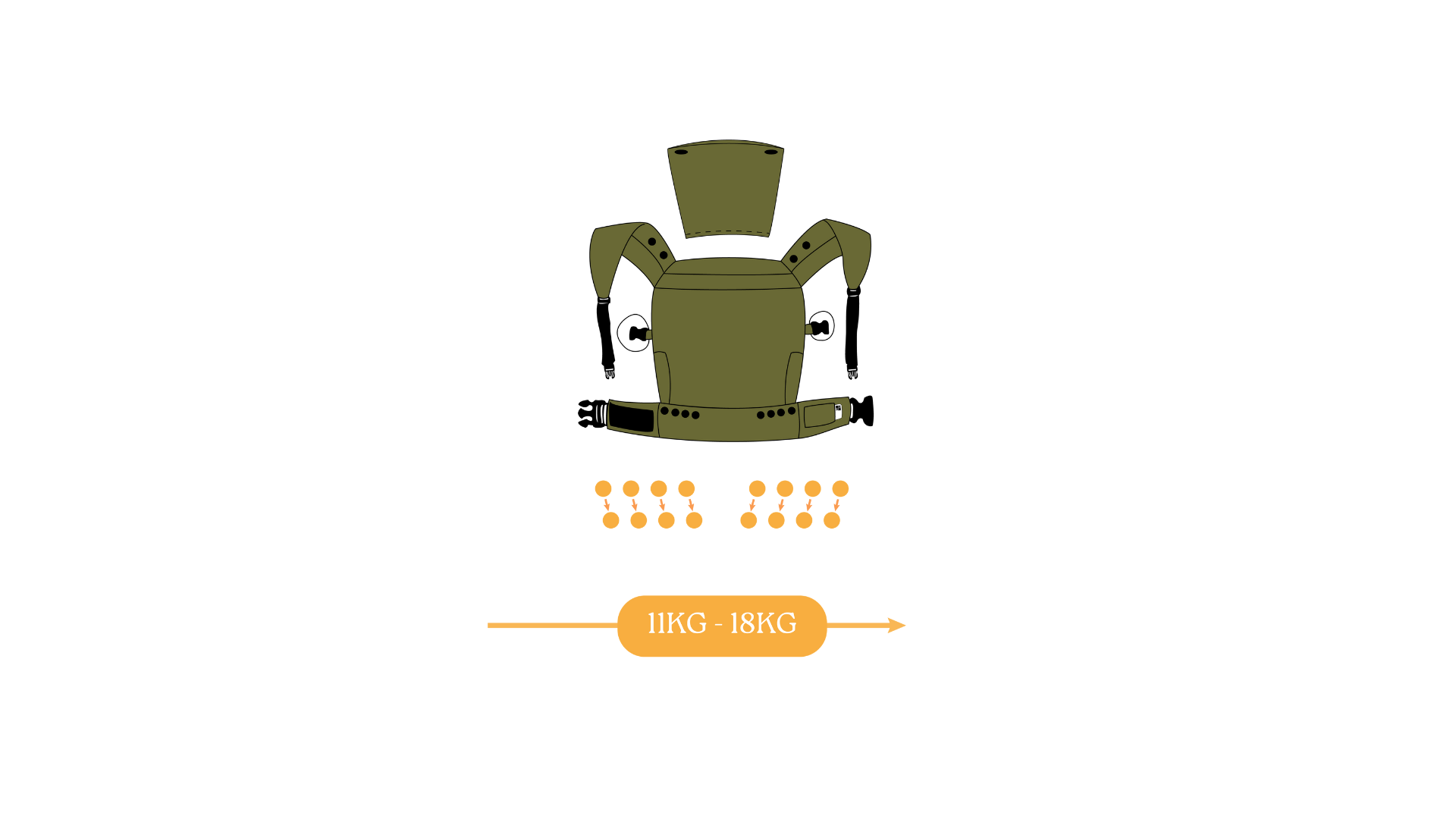 El diseño incluye correas laterales funcionales que permiten ajustar el cargador para que el bebé quede bien pegado al cuerpo del adulto, asegurando que su espalda se mantenga en una posición adecuada y ergonómica.
